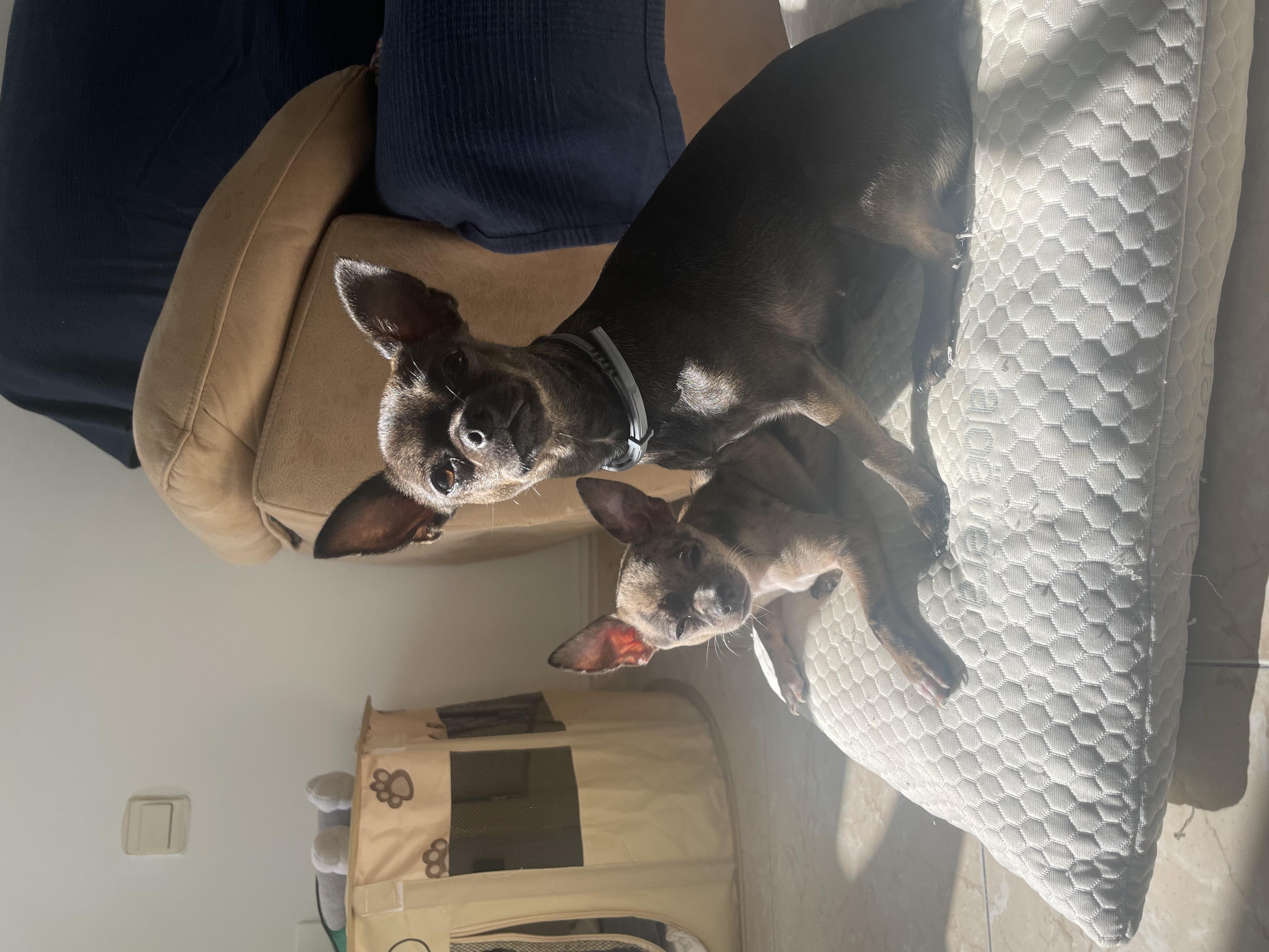 Busco familia de acogida temporal para Nigiri y Udon, mis dos chihuahuas pequeños, tranquilos y muy cariñosos, mientras encuentro vivienda estable en Barcelona 💛🐾 en Málaga o Barcelona
