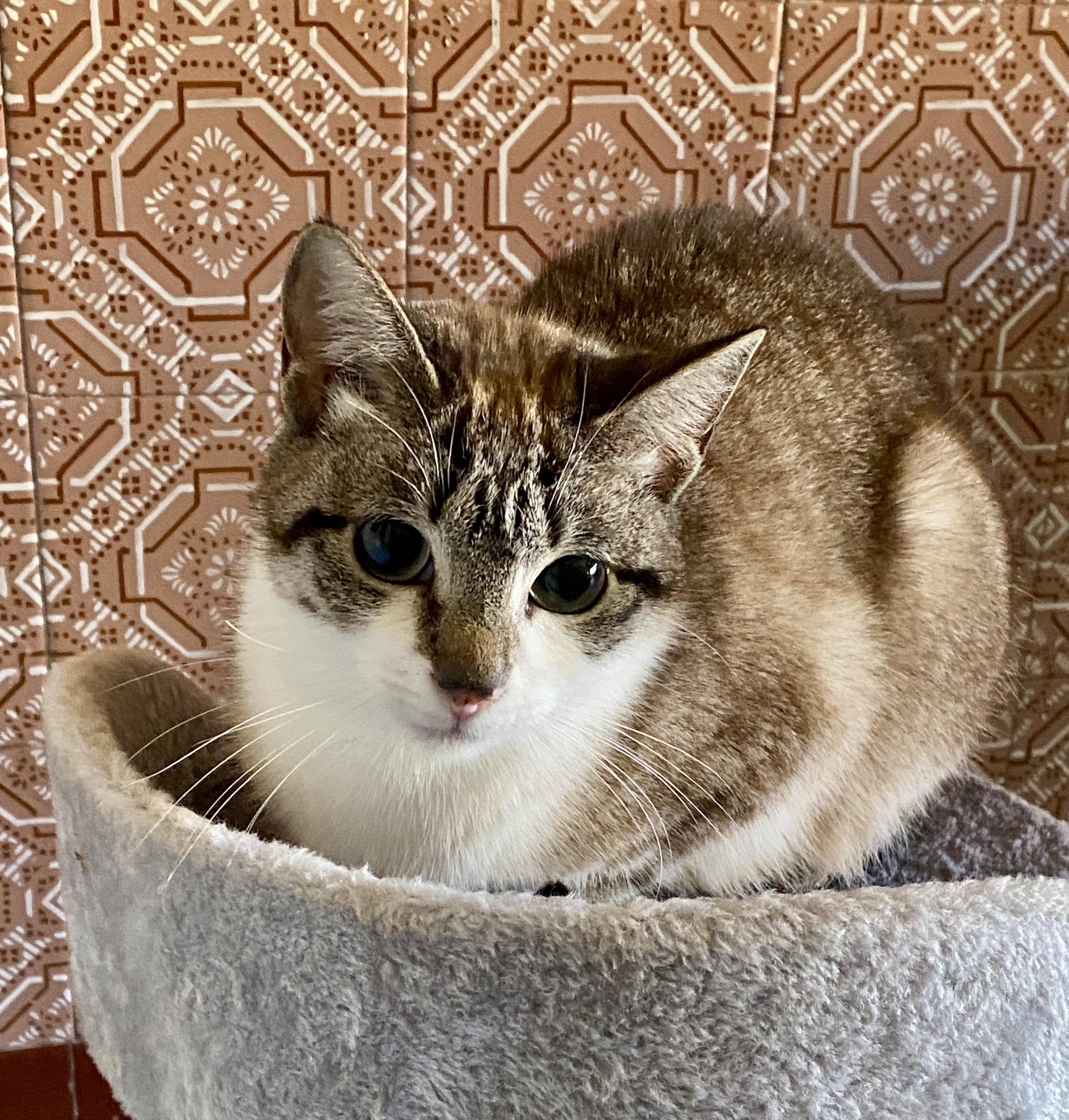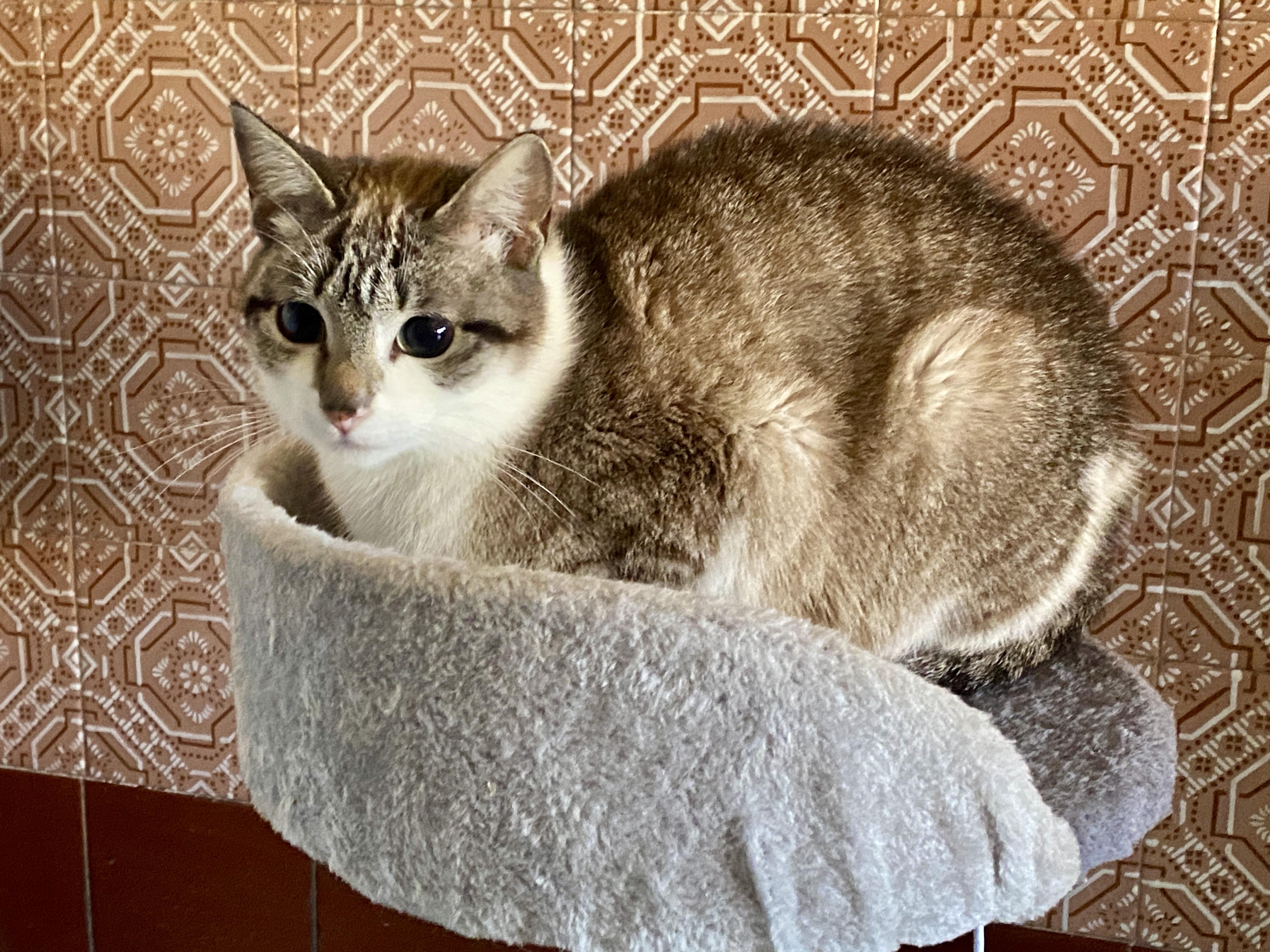 Esta gatita tan bonita se llama SIENA y busca adopcion. La recogimos de la calle , es una gata hembra, joven, sobre 1añito y es super buena, muy tranquila y cariñosa. Es mestiza, con tonos grises y marrones de gata siames.